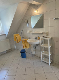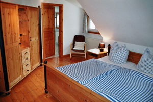 Die Gelbe Wohnung befindet sich im OG und hat 2 Schlafräume mit 1 DZ und einem Zimmer für 1-2 Personen. Es gibt ein geräumiges Bad (DU/WC) und einen Wohnraum mit Küche (Spülmaschine)und Essecke. In dieser Wohnung können keine Hunde mitgebracht werden.